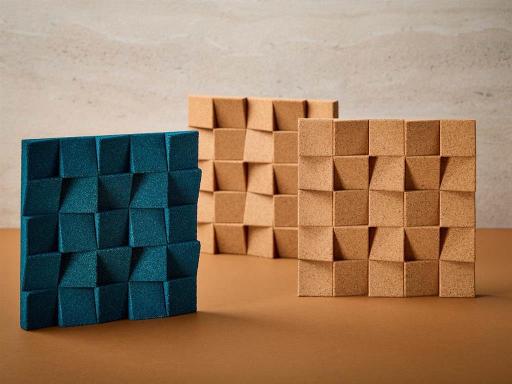 Beyond its core shapes, Organic Blocks also includes Cork Strips, eight variations of linear profiles that add rhythm and structure to walls, and Acoustic Panels that enhance both performance and aesthetics. The series allows for limitless customization, inviting designers to create layered, three-dimensional compositions. Accessories such as modular lighting elements and natural moss infill pieces can also be integrated into the system.