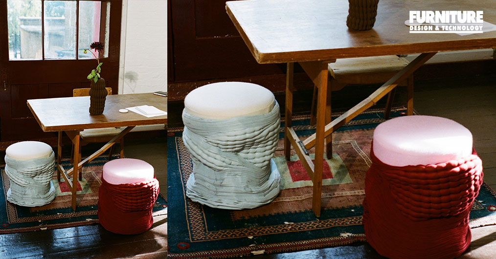 British-Brazilian designer Tessa Silva has developed a distinctive body of work that blurs the boundary between textile craft and sculptural furniture, using materials such as sand, wool and fabric to create expressive objects. Her latest work, the Smock collection, comprises a series of voluptuous vases and soft stools formed through a labour-intensive process of pleating and smocking textiles. What started as flat fabric is gradually transformed into three-dimensional forms that appear swollen, animated and almost organic in character. FURNITURE DESIGN AND TECHNOLOGY (FDT) highlights how clever and skillful craftsmanship can counterpoint mass production.